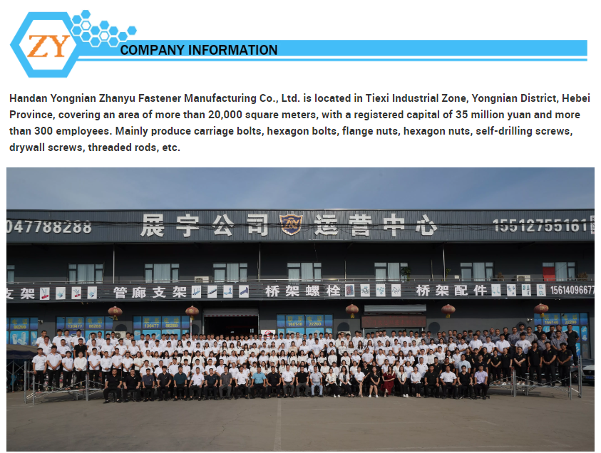 an area of more than 20000 square meters, with a registered capital of 35 million yuan and more than 320 employees. Main products of the company: bolt,